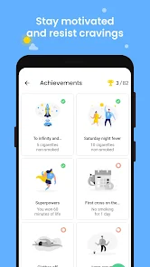 - ๐ฎ Key Engagement โ Achievements and Rewards: Users get incentivized with digital trophies and rewards as they hit their quitting goals, adding a gamified layer to the quitting process.